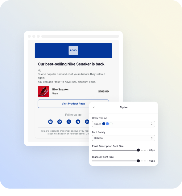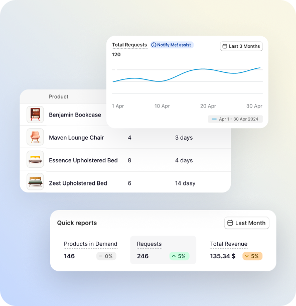 Notify customers instantly via email, SMS, and web push notifications when products are back in stock and recover more lost sales.
