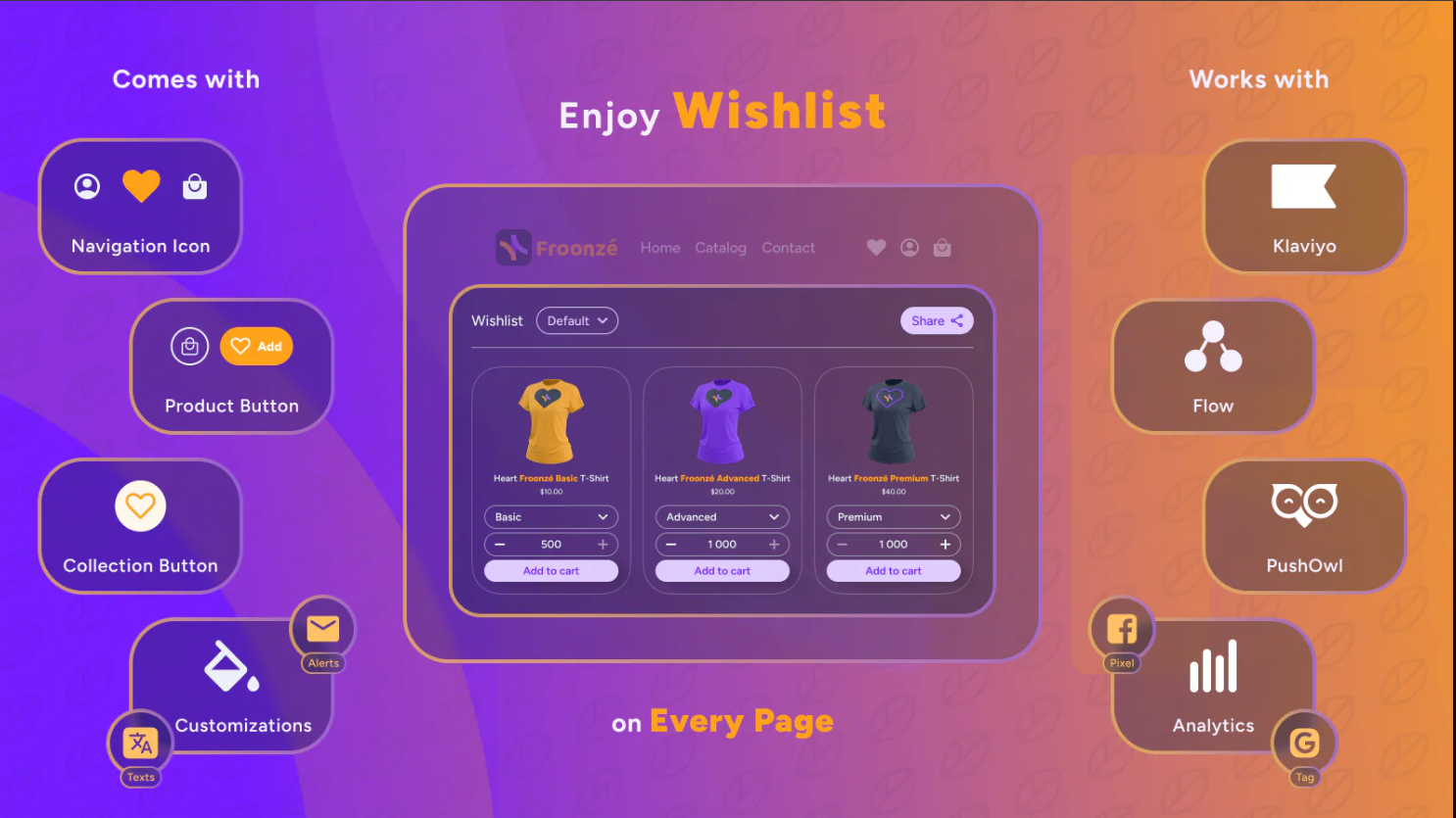 Froonze focuses on the customer account experience. By making the wishlist part of the account page, it encourages users to sign up for your mailing list.